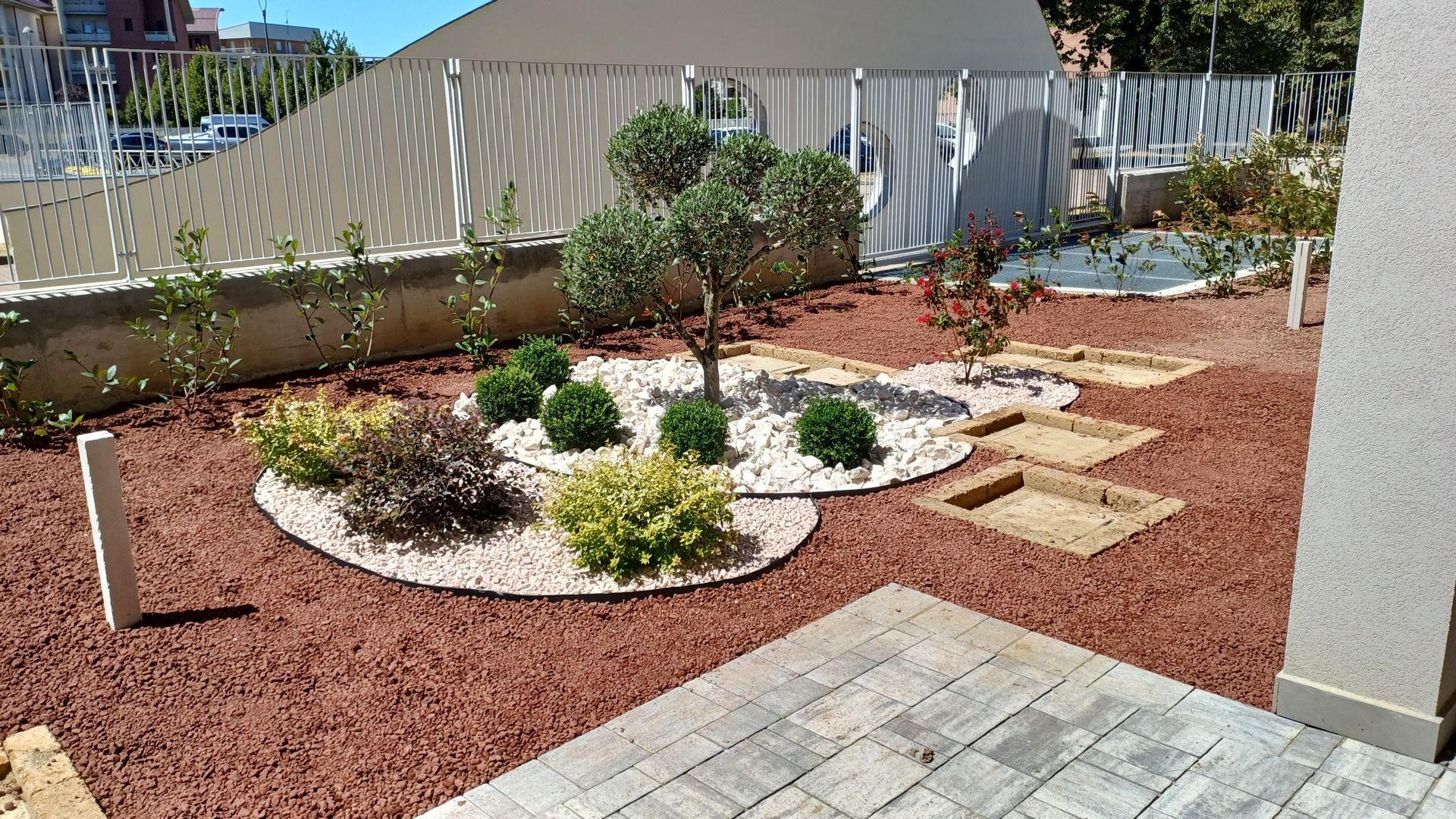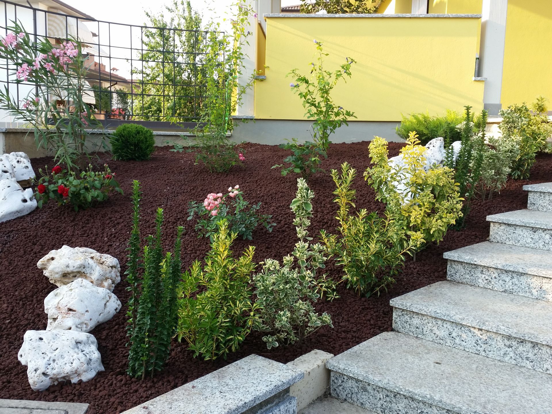 Bordure per scala di ingresso e pacciamatura in lapillo