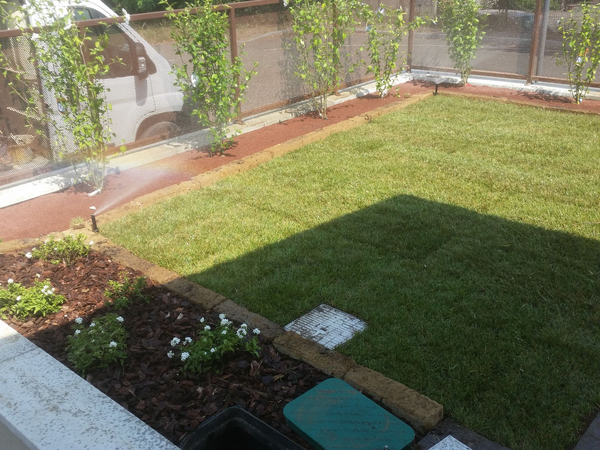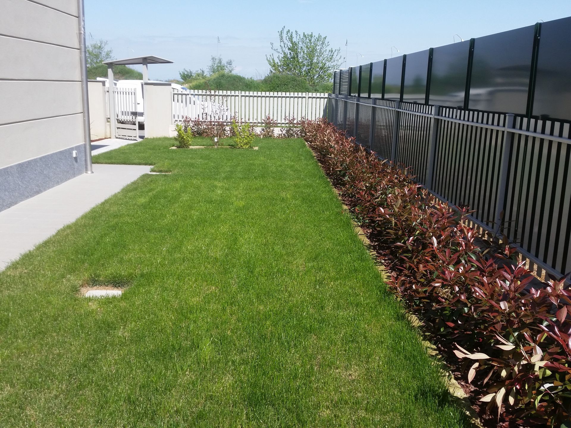 Un nuovo giardino con manto a zolle e siepe in photinia red robin