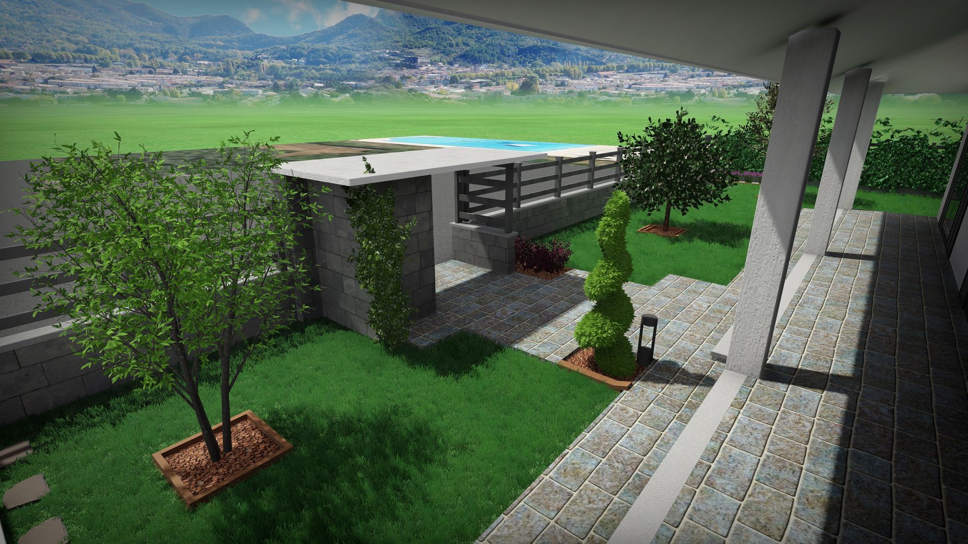 Studio in 3D visto dall'alto per realizzazione nuovo giardino