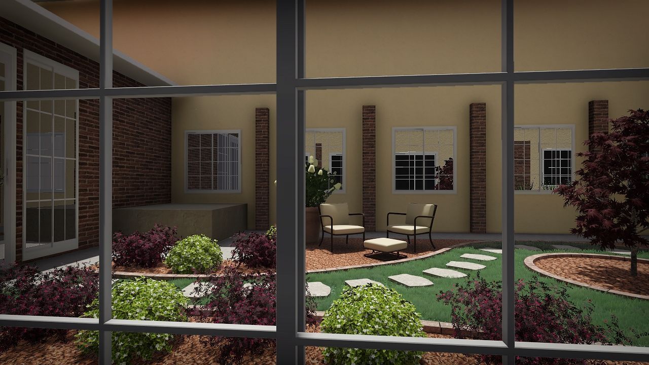 Studio di arredo verde di un cavedio a cielo aperto
